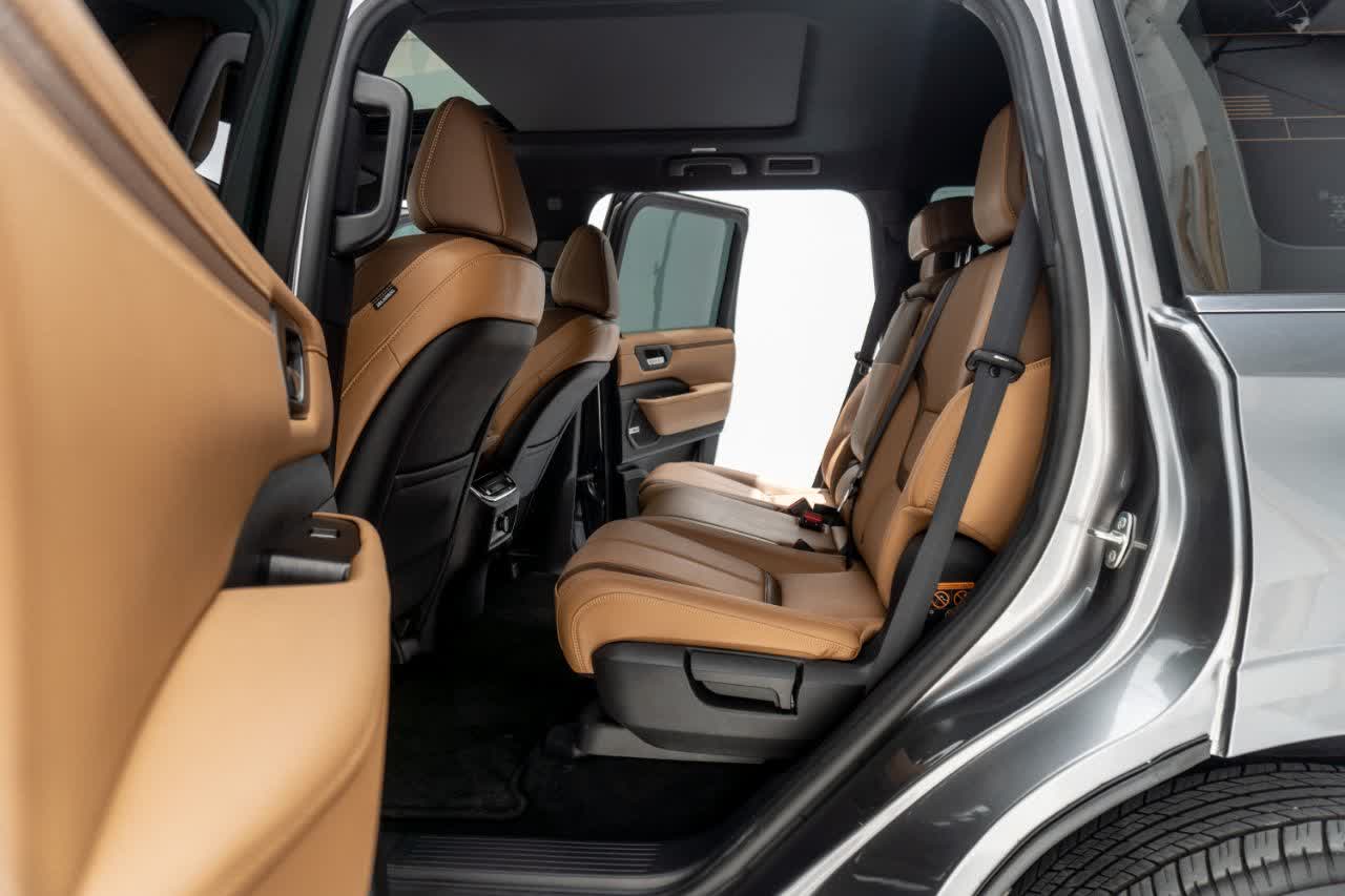 Passengers can also enjoy tri‑zone automatic climate control, power‑adjustable seats, and plenty of legroom, making long trips more comfortable. On the exterior, the Patrol stands out with its bold front grille, LED headlights, and large alloy wheels, giving the SUV a strong and elegant presence on the road.